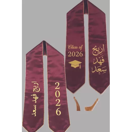 وشاح تخرج تطريز لون عنابي تطريز حسب الطلب